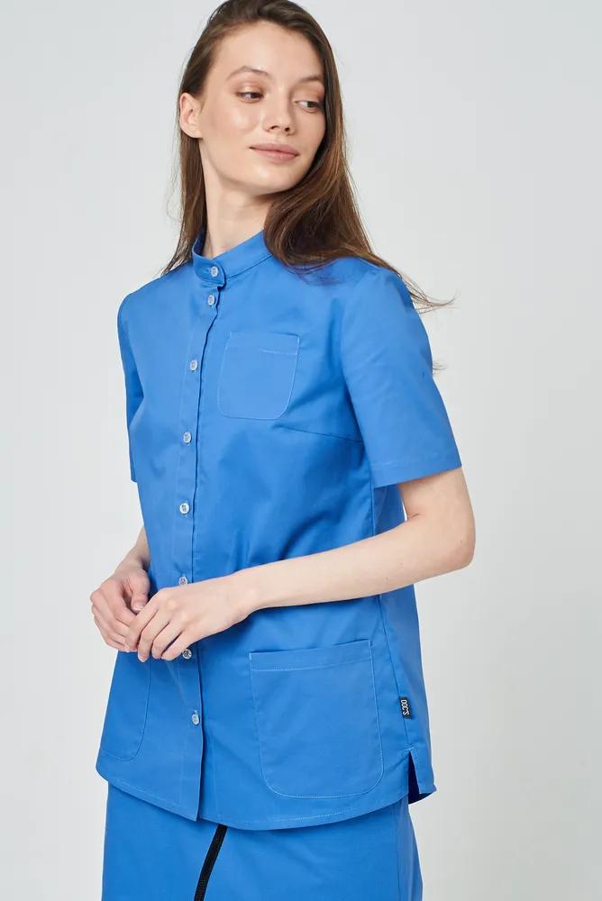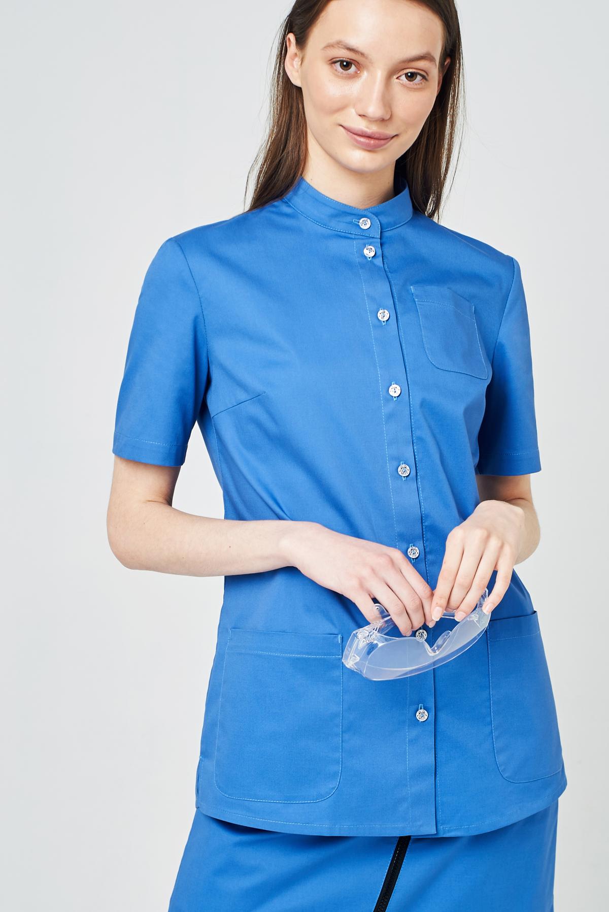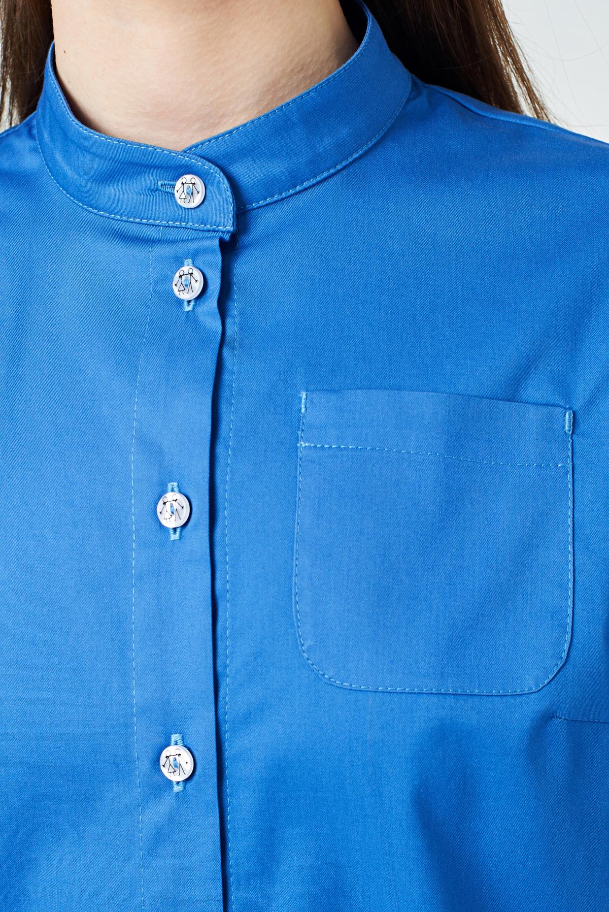 Удлиненная медицинская рубашка с 2 карманами, воротником-стойкой и удлиненным рукавом. Очень актуально, очень удобно, стильно и аккуратно.