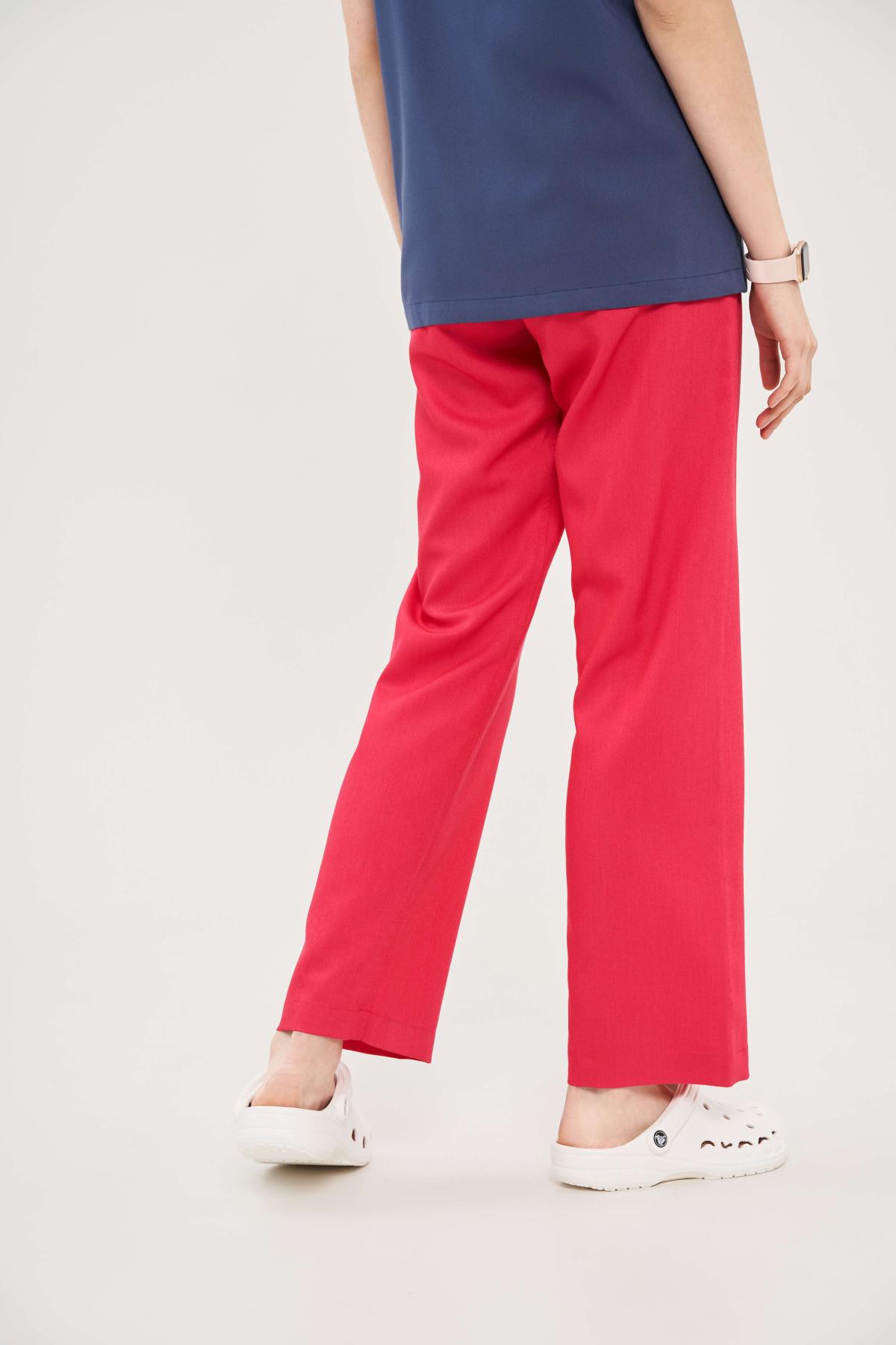 Прямые брюки без боковых швов очень красиво сидят и при этом удобные, как штаны для йоги. Мягкая стрейч поливискоза просит минимального ухода - она мало мнется, легко отстирывается и быстро сохнет. Обратите внимание, я что у брюк нет боковых карманов, есть 2 задних. Очень удобный пояс на резинке и с регулирующим шнурком. Высоту посадки вы можете регулировать по желанию - на талии или пониже. Вас порадуют очень аккуратный пошив и красивые детали. Наша основная задача - забота о клиенте и мы с любовью относимся к каждому нашему изделию.