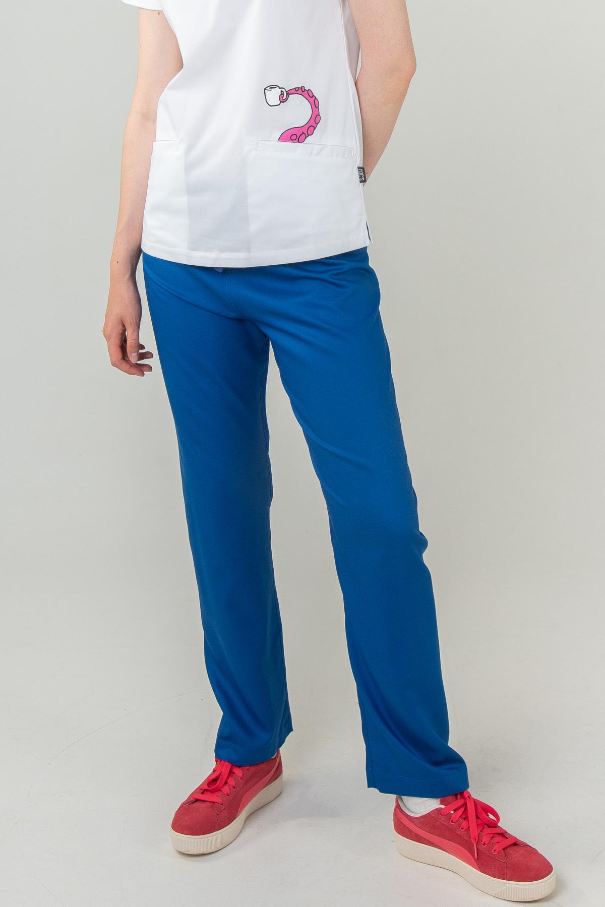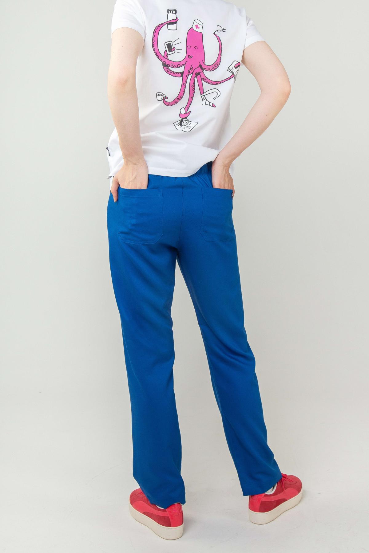 Прямые брюки без боковых швов очень красиво сидят и при этом удобные, как штаны для йоги. Мягкая, немного тянущаяся и чуть блестящая ярко-синяя поливискоза (кстати, внутри команды мы называем этот цвет скоропомощным синим) очень требует минимального ухода - она мало мнется, легко отстирывается и быстро сохнет. Обратите внимание, я что у брюк нет боковых карманов, есть 2 задних. Очень удобный пояс на резинке и с регулирующим шнурком. Высоту посадки вы можете регулировать по желанию - на талии или пониже. Вас порадуют очень аккуратный пошив и красивые детали. Наша основная задача - забота о клиенте и мы с любовью относимся к каждому нашему изделию.