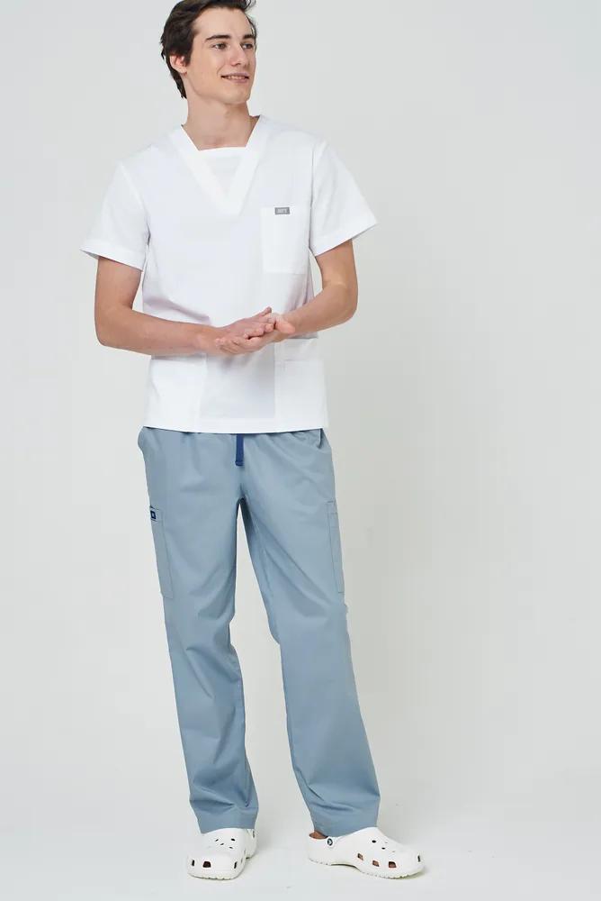 Целых 8 карманов у брюк Луи из мягкой и прочной хлопковой ткани. Что такое хлопковая смесь? Дело в том, что хлопок- хороший материал, дышащий, тактильно-приятный, экологичный, гигроскопичный, но у него есть минусы - он очень сильно мнется, впитывает влагу, садится и деформируется со временем, а так же из него вымывается краска. Для того, чтобы сделать материал долговечным и чтобы он не терял вид, к хлопку добавляется полиэстер, а для того, чтобы ткань немного тянулась и было удобнее - спандекс. Мы взяли лучший хлопок, который смогли найти, еще добавили к нему пич-эффект - специальную обработку для большей тактильной мягкости. Мы сделали классические прямые брюки, добавили широкий пояс с регулирующим шнурком, закрепили резинку на поясе, чтобы она не сминалась и не перекручивалась. Ткань не просвечивает. Эти брюки универсальны, их хорошо сочетать с серыми, белыми и голубыми хлопковыми рубашками или с чем-то еще, что вам больше по душе. Наши клиенты говорят о том, что эти брюки - одни из самых удобных в их гардеробе и вот уже несколько лет как новые, не смотря на активную эксплуатацию.
