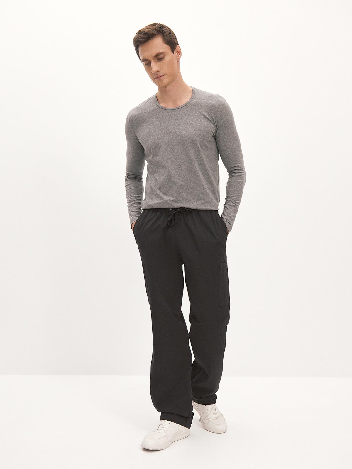 Целых 8 карманов у брюк Луи из мягкой и прочной хлопковой ткани. Что такое хлопковая смесь? Дело в том, что хлопок- хороший материал, дышащий, тактильно-приятный, экологичный, гигроскопичный, но у него есть минусы - он очень сильно мнется, впитывает влагу, садится и деформируется со временем, а так же из него вымывается краска. Для того, чтобы сделать материал долговечным и чтобы он не терял вид, к хлопку добавляется полиэстер, а для того, чтобы ткань немного тянулась и было удобнее - спандекс. Мы взяли лучший хлопок, который смогли найти, еще добавили к нему пич-эффект - специальную обработку для большей тактильной мягкости. Мы сделали классические прямые брюки, добавили широкий пояс с регулирующим шнурком, закрепили резинку на поясе, чтобы она не сминалась и не перекручивалась. Ткань не просвечивает. Эти брюки универсальны, их хорошо сочетать с серыми, белыми и голубыми хлопковыми рубашками или с чем-то еще, что вам больше по душе. Наши клиенты говорят о том, что эти брюки - одни из самых удобных в их гардеробе и вот уже несколько лет как новые, не смотря на активную эксплуатацию.