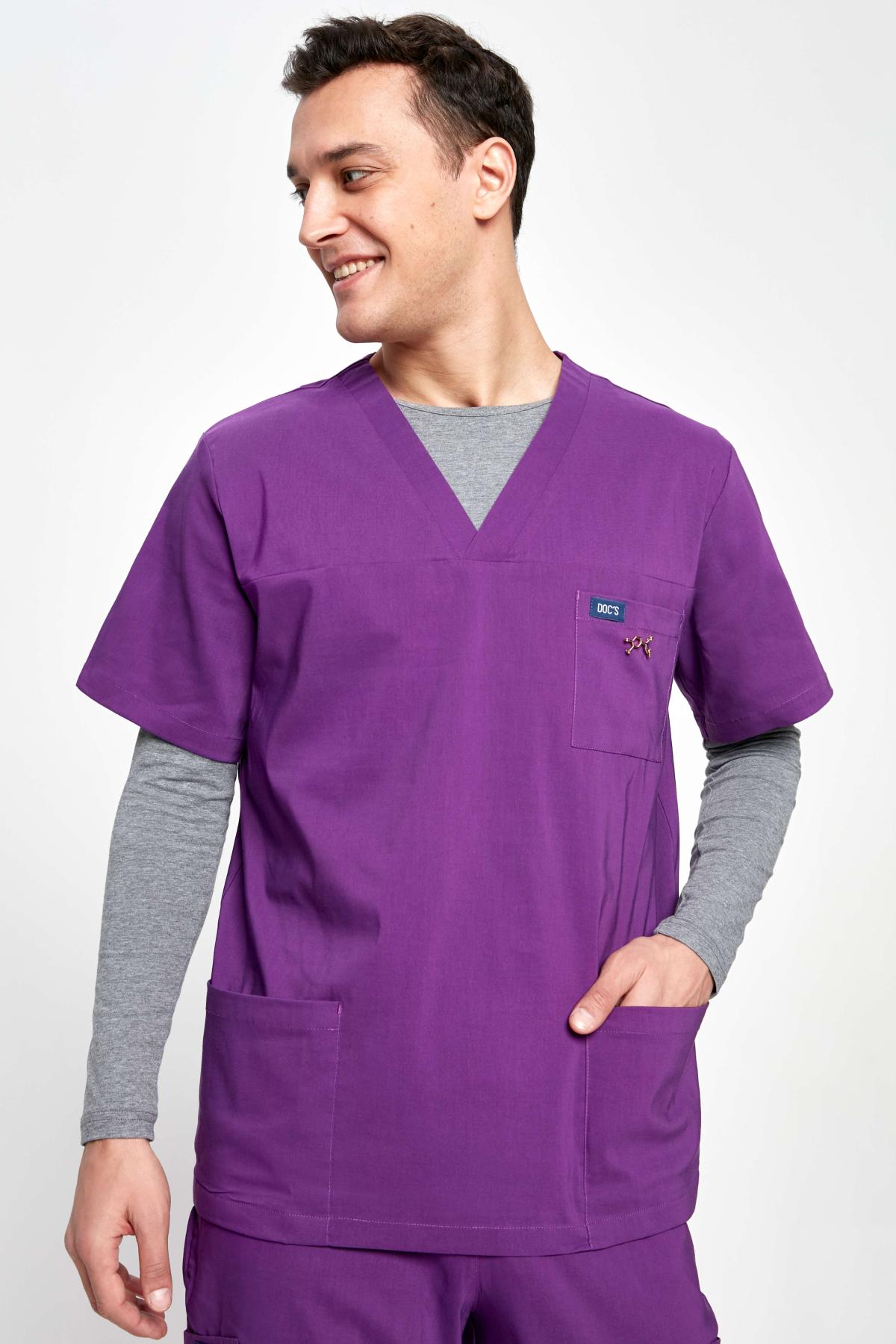 Классическая модель медицинской рубашки с V-вырезом и 3 крупными карманами. очень качественный хлопок, легкий и эластичный, прослужит долго. Если вам нравятся классические модели, яркие цвета и хорошие ткани, смело берите Дженнер. В нем точно не будет жарко, очень хорошо для теплых помещений или под другие СИЗы.