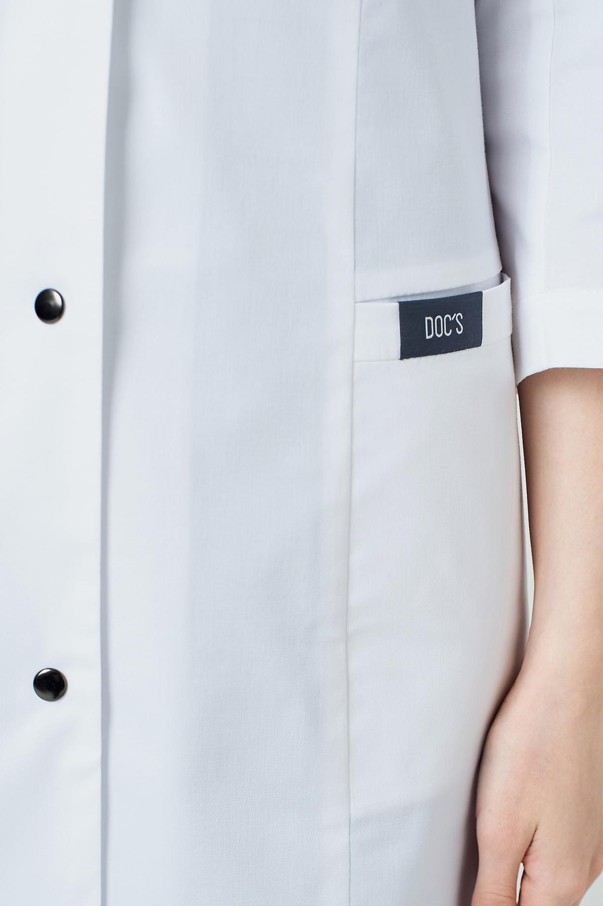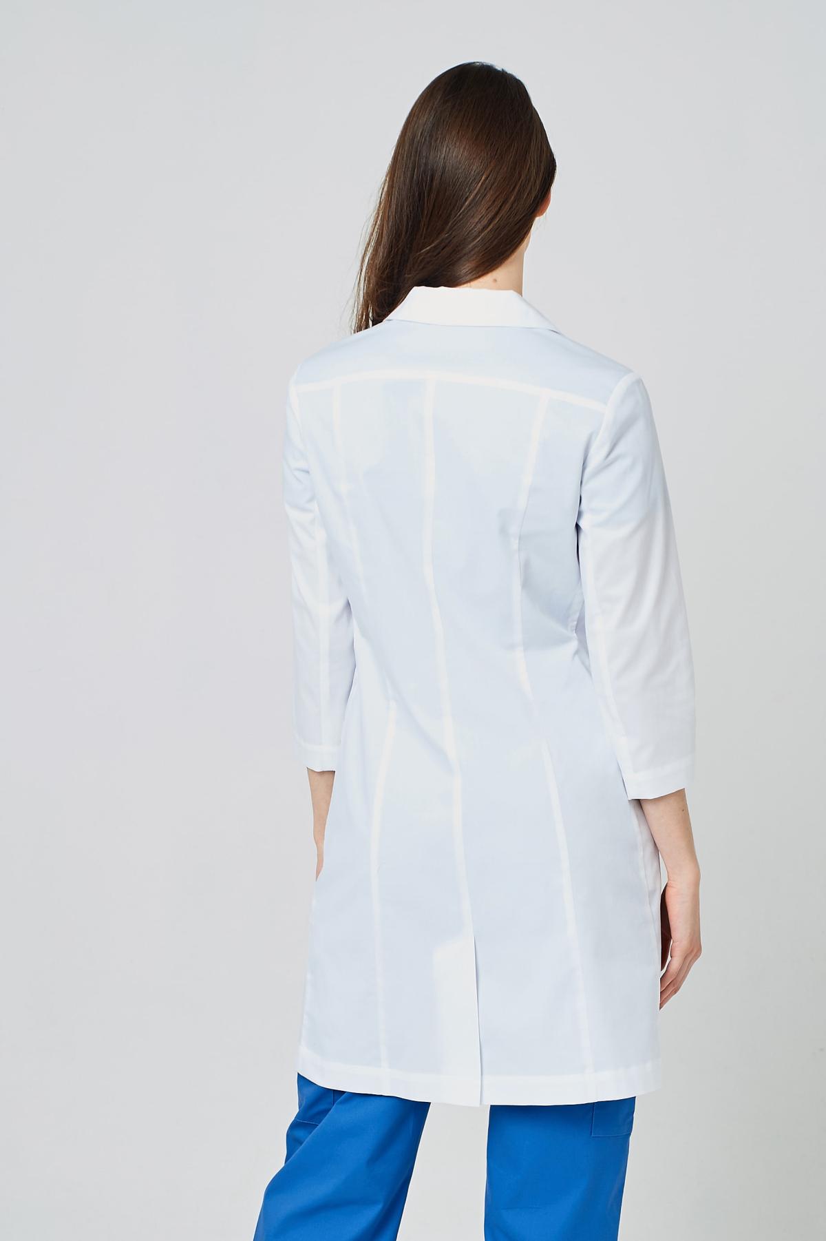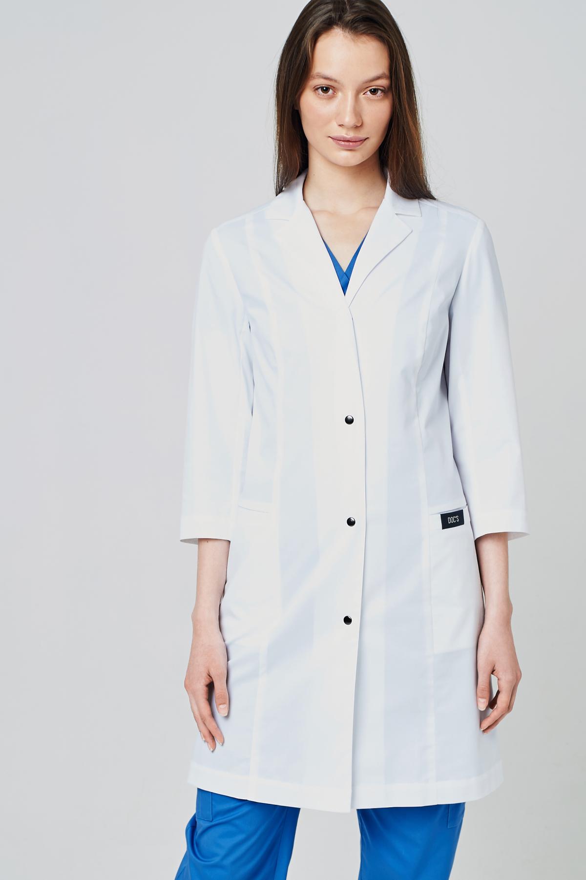 Приталенный халат с английским воротником и рукавами 3/4, на кнопках, из плотной хлопковой ткани. В нем есть все, чтобы было удобно. За что мы любим рукава 3/4? Во-первых, это красиво, во-вторых, удобно мыть руки, а в-третьих, чем короче рукав, тем меньше риск распространения внутрибольничной инфекции. Мы всегда заботимся о комфорте, функциональности и качестве изделий. Клиенты любят наши халаты за стиль, минимализм, удобство и надёжность. Нам важно, чтобы вы всегда чувствовали себя классно и были уверены в одежде 24/7.