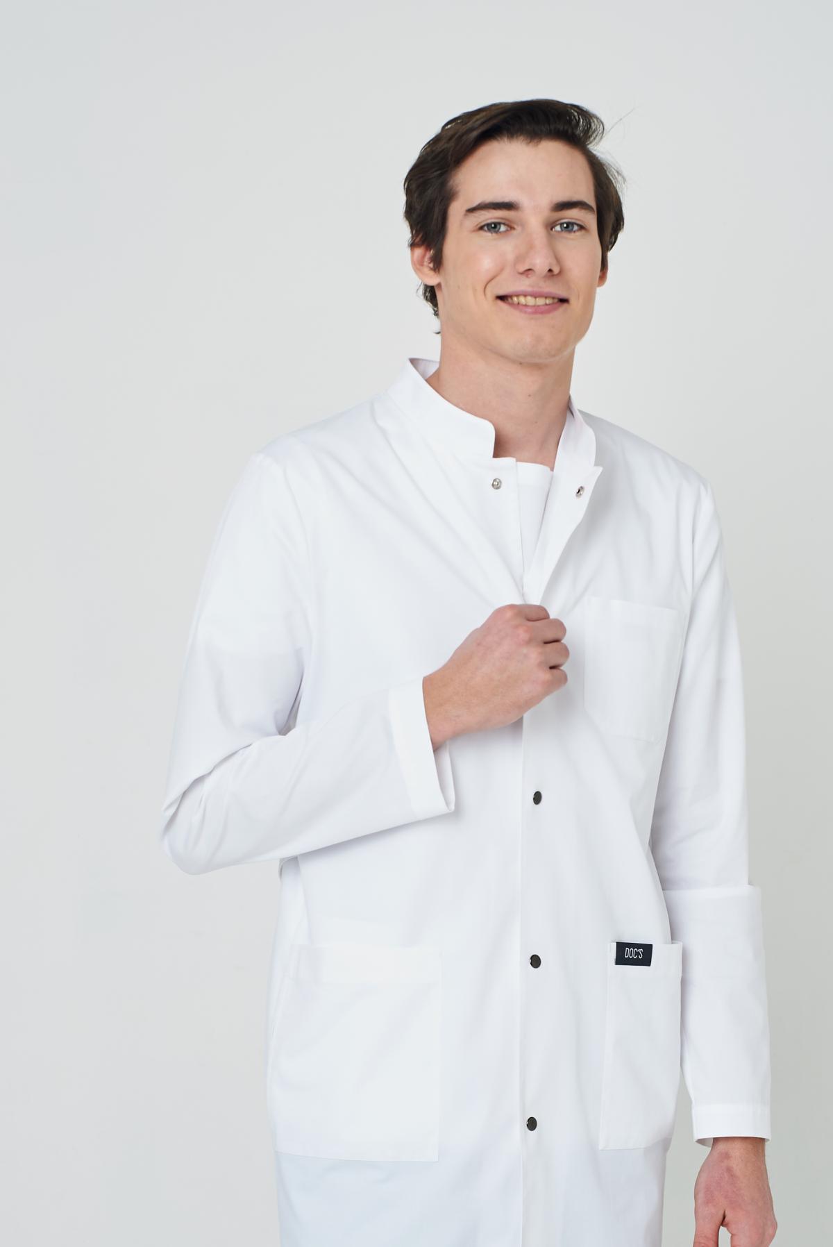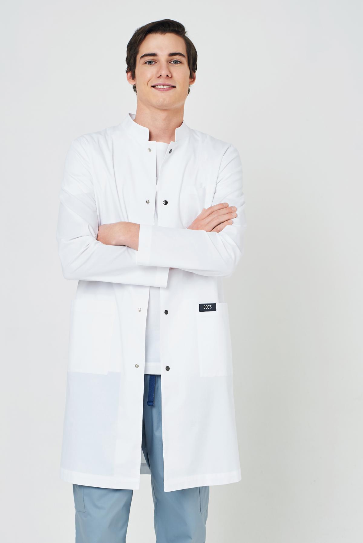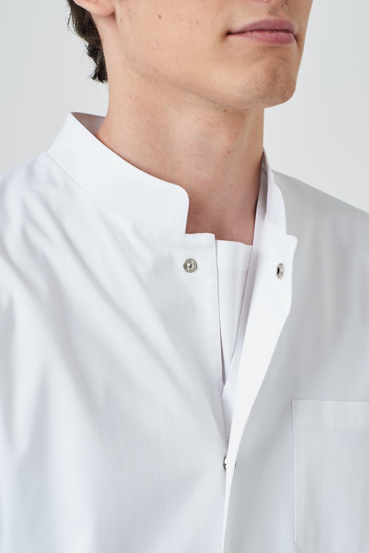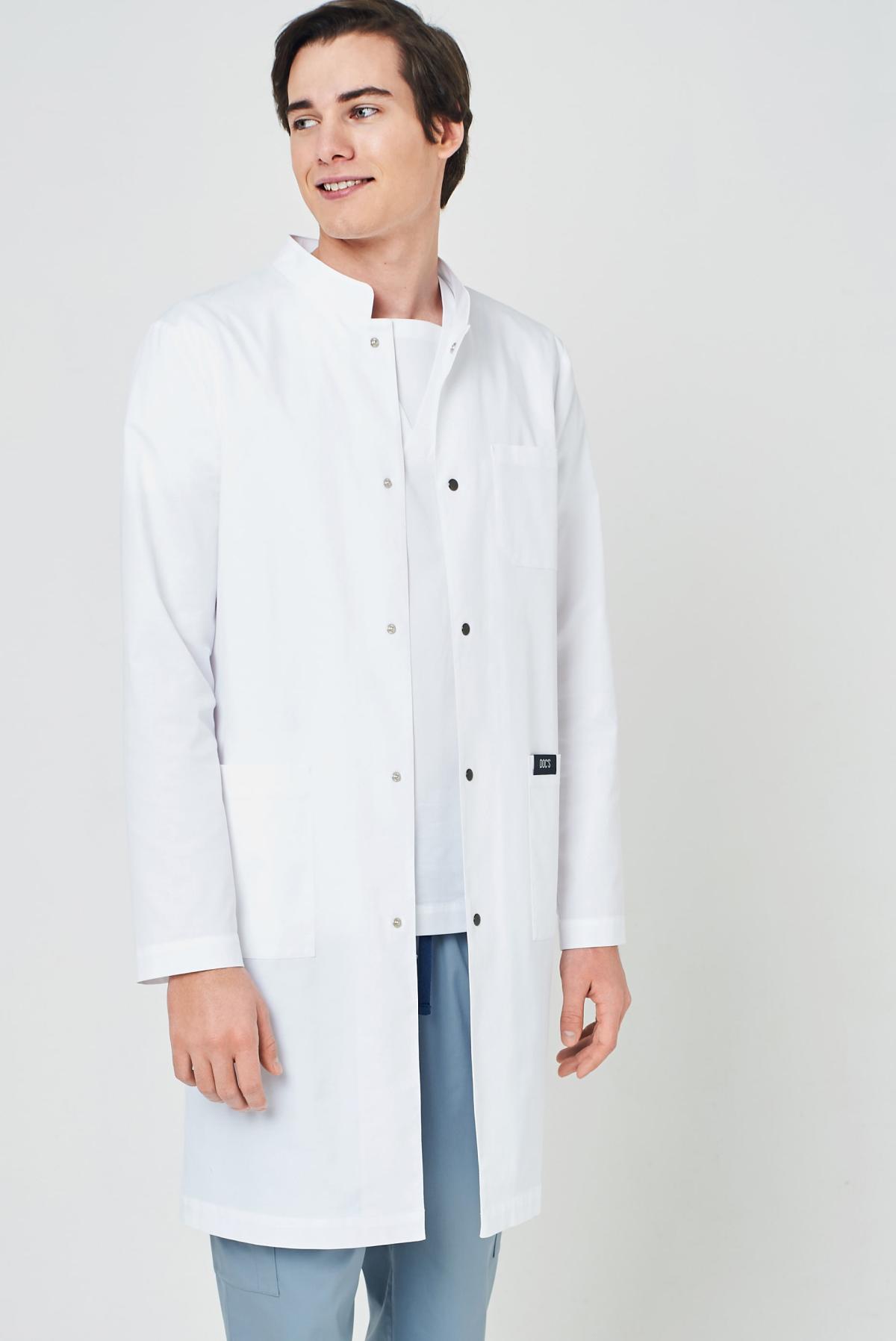Медицинский халат с воротником-стойкой и на кнопках. Средняя длина, мягкая и комфортная хлопковая ткань, три крупных кармана с укреплением мест отрыва, разрезы по бокам для рук, сзади - разрез для свободы движений и регулирующий хлястик. Качество пошива мы гарантируем - ровные строчки, прочные швы и закрепление там, где оно должно быть. Мы стараемся с хирургической точностью подходить к пошиву изделий.